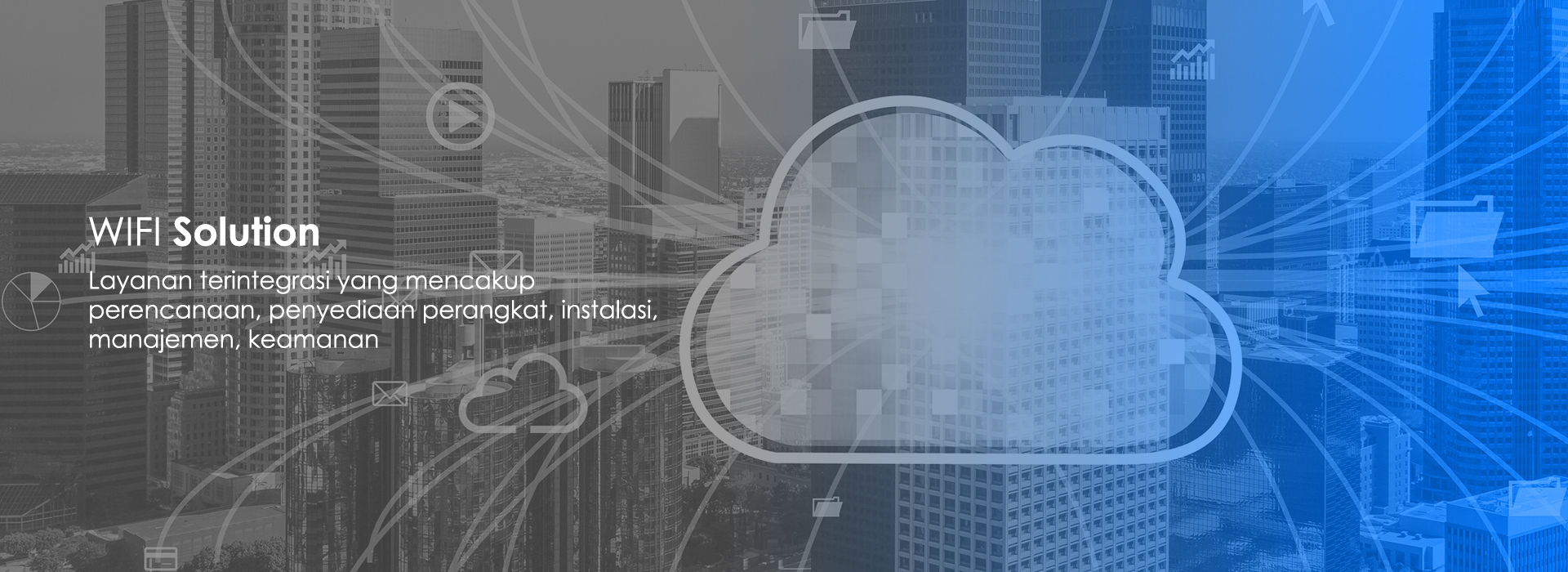 WiFi Solution adalah layanan terintegrasi yang mencakup perencanaan, penyediaan perangkat, instalasi, manajemen, keamanan, hingga pemeliharaan jaringan WiFi secara profesional agar konektivitas berjalan stabil, aman, dan sesuai kebutuhan operasional organisasi.